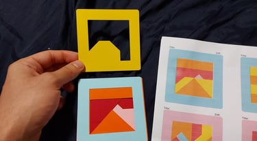 Inspired by tangram style puzzles, the game focuses on visual thinking and composition. Every solution forms a clean, balanced graphic design.